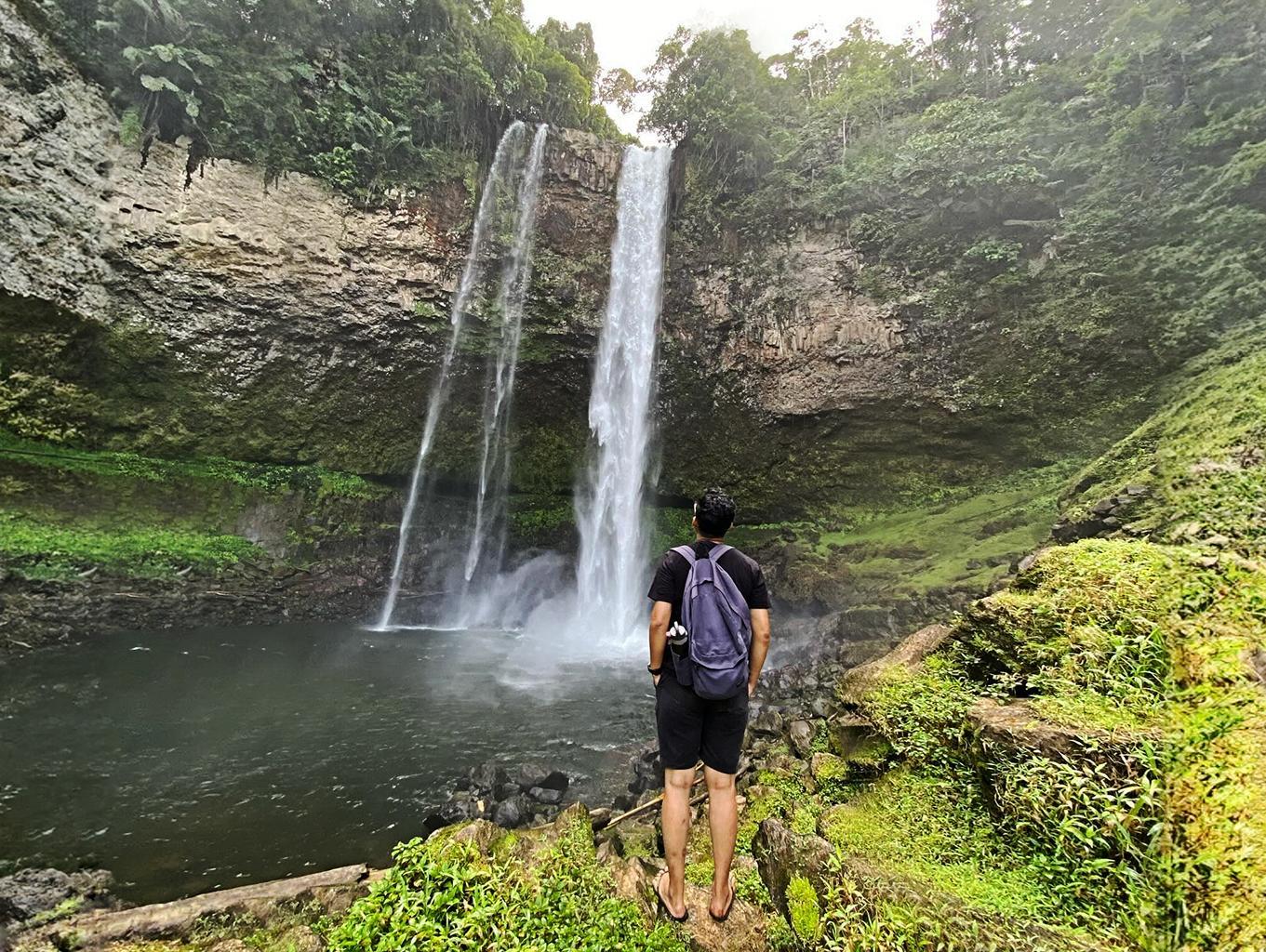 Saat tiba di lokasi, mata akan disuguhi oleh pemandangan yang memukau. Air terjun ini begitu tinggi sehingga sebagian airnya terbawa oleh angin, menyapa setiap pengunjung dengan gemuruh yang menyegarkan. Sensasi basah yang menyentuh wajah dan tubuh saat mendekat membuat hati menjadi adem dan tenang. Pengalaman ini sungguh luar biasa dan hanya bisa dirasakan dan dinikmati, tidak dapat diungkapkan dengan kata-kata.