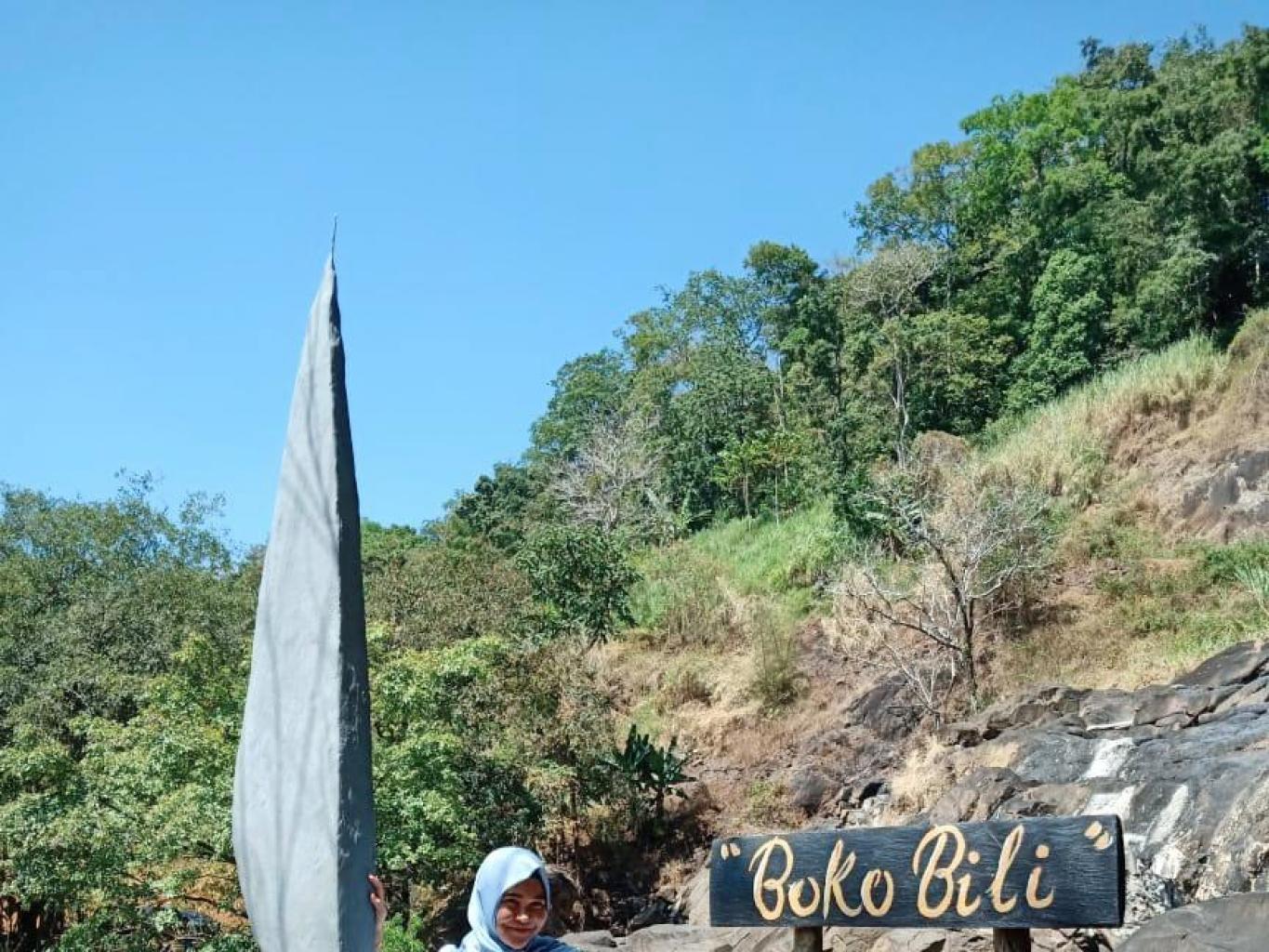 Selfy area dengan latar patung badik terletak di area air terjun bokobili
