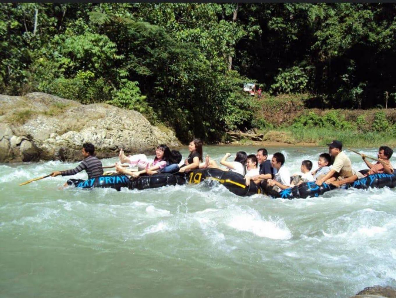 Pada atraksi ini kita akan di pandu oleh tour guide yang mengendalikan arah dan keseimbangan di ban karet.