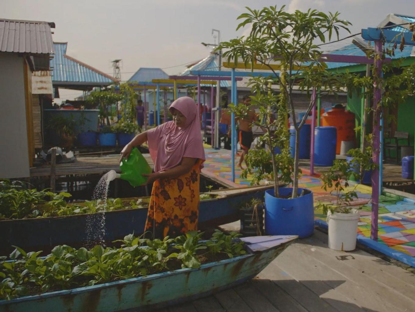 kampung yang bermukim diatas laut memiliki tanaman hidroponik yang subur dan hijau,yang bisa langsung di komsumsi