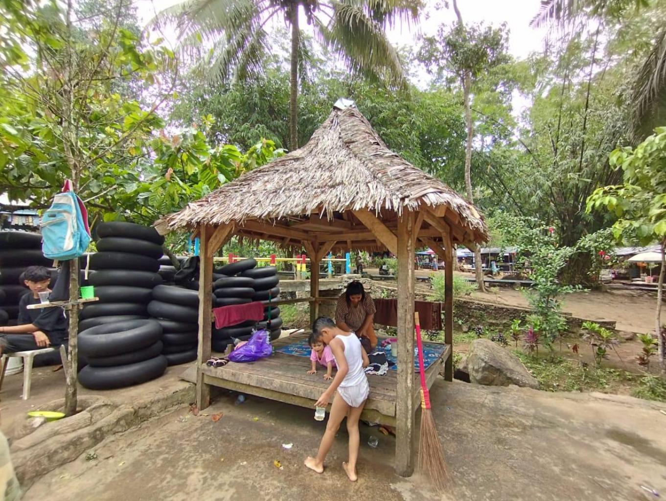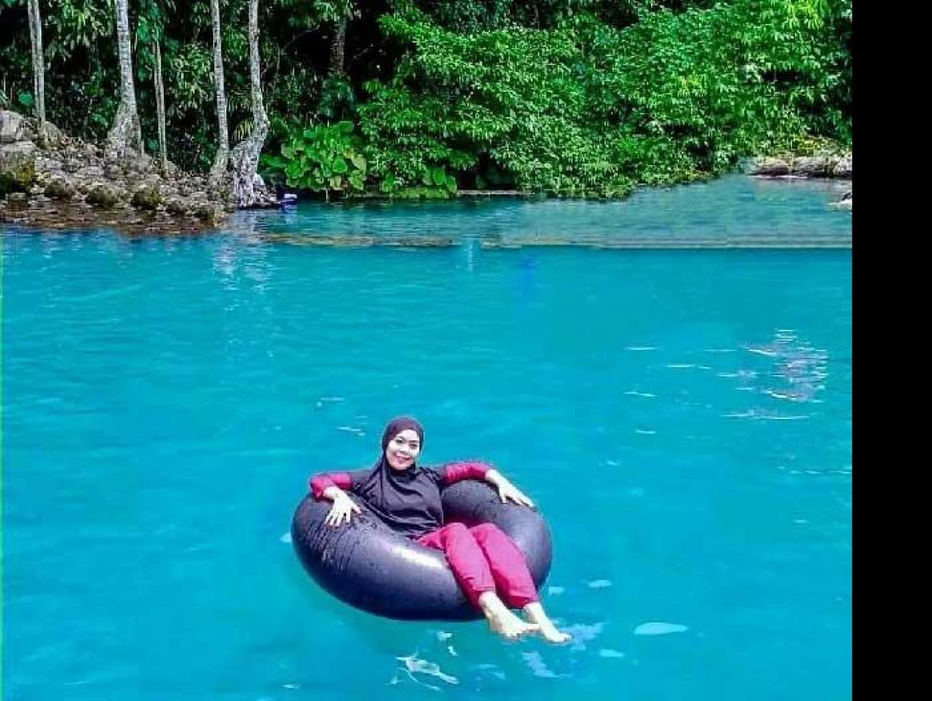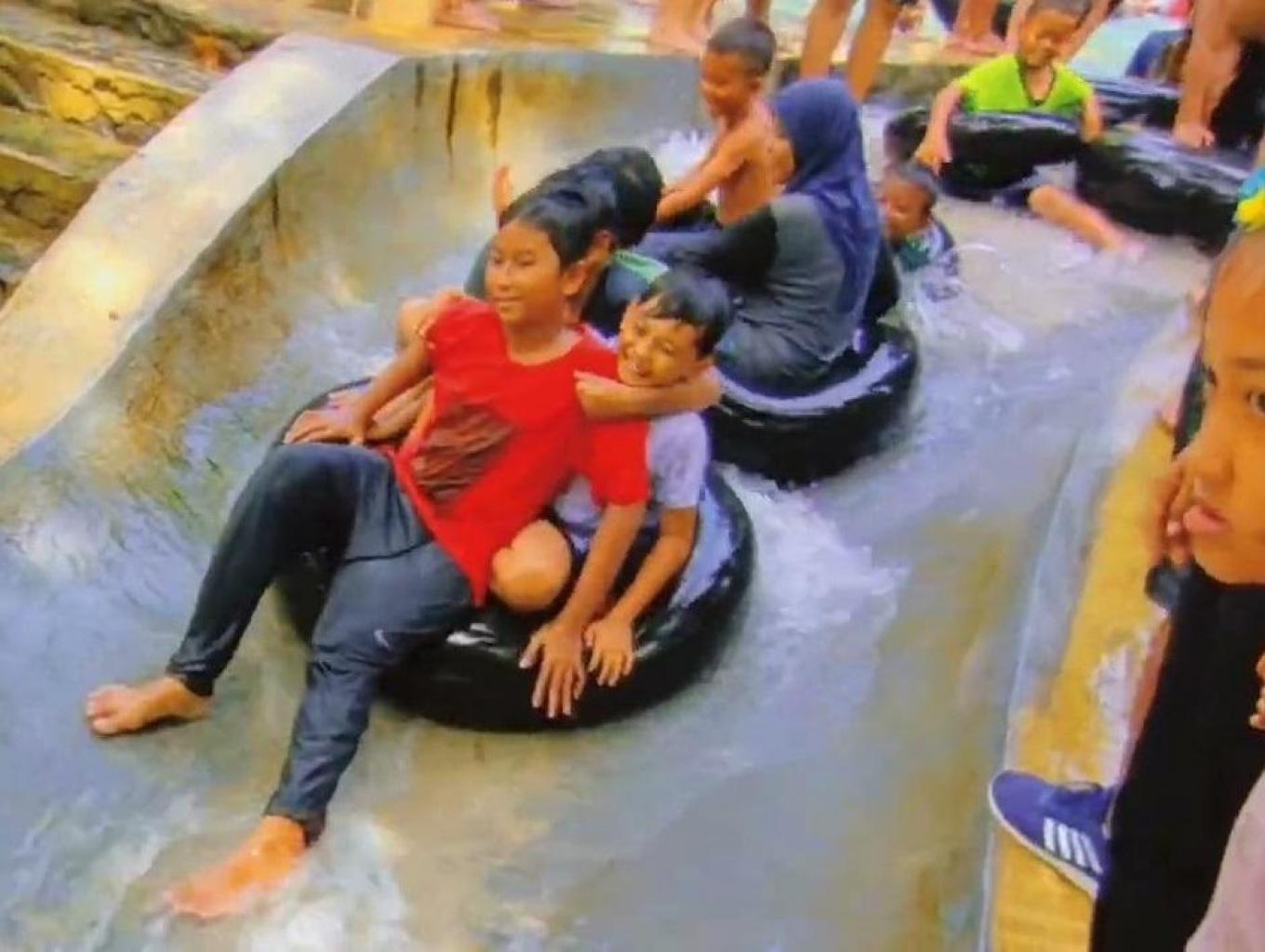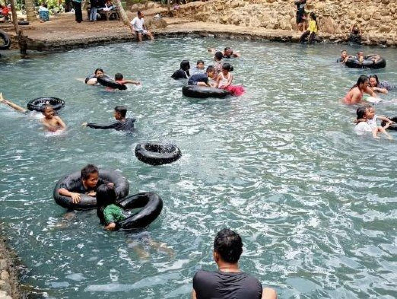 pengunjung dapat menyewa ban untuk bersantai diatas air ataupun menikmati seluncuran