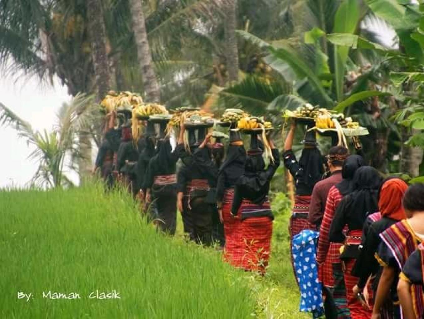 Barulah iringan muda mudi, dengan pakaian khas desa sapit (Jegek) berbarisan yang di awali dengan mangku bebubus batu paling depan, dan tidak boleh di dahului, dengan makna harus disiplin, karena ini adalah acara sakral dan menunjukkan hormat kita terhadap orang tua. Perjalanan menuju kampu selama 20 menit, dengan iringan tabuhan gamelan buat sunyi dan teduh. Menunjukan itu kerendahan hati, dan kesucian dalam mendekatkan diri pada sang pencipta.