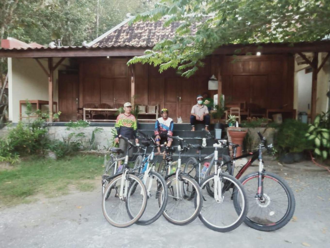 Mengelilingi Desa Wisata Wukirsari dengan sepeda. Mengenal lingkungan dan melihat dari dekat kegiatan membatik Ibu ibu di sentra kerajinan batik tulis.