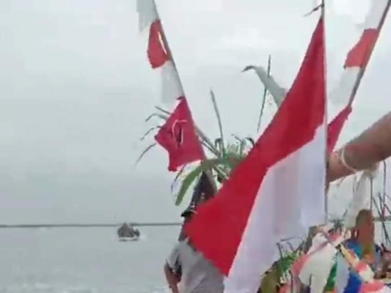 Para wisatawan ikut merayakan acara adat budaya NADRAN pesta laut Karangsambung.