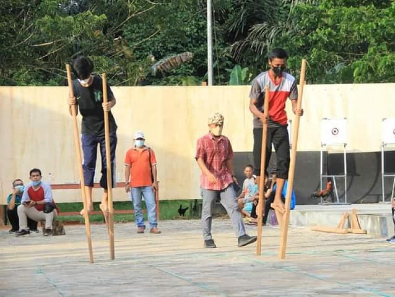 Di kelurahan guntung, tepatnya diarea rumah adat terdapat fasilitas-fasilitas penunjang permainan atau olahraga tradisional seperti sumpit, panahan, gasing kayu, enggrang, dan ketapel. fasilitas yang tersedia adalah tempat olahraga tradisional tersebut da juga alat olahraga tradisional tersebut. wisatawan dapat bermain langsung dan mencoba semua olahraga tradisional tersebut, karena di sana ada instruktur dari olahraga tradisinal tersebut yang akan membantu, wisatawan atau pengunjung hanya dengan membayar seikhlasnya atau bayar sukarela sudah dapat mencoba semua olahraga tradisional yang ada. pengunjung dapat melakukannya setiap sore sabtu da minggu
