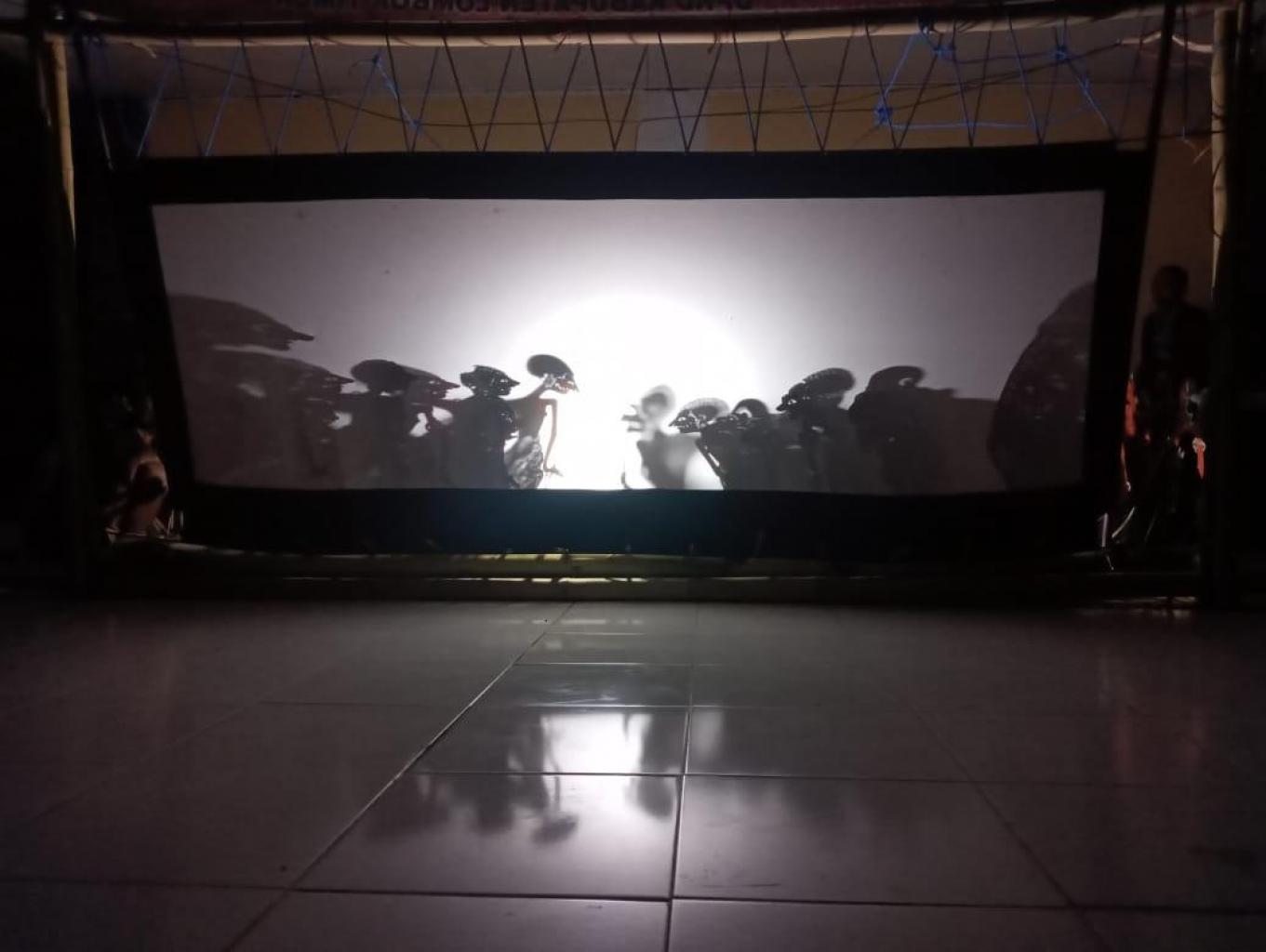 Momen latihan pentas wayang oleh para seniman.