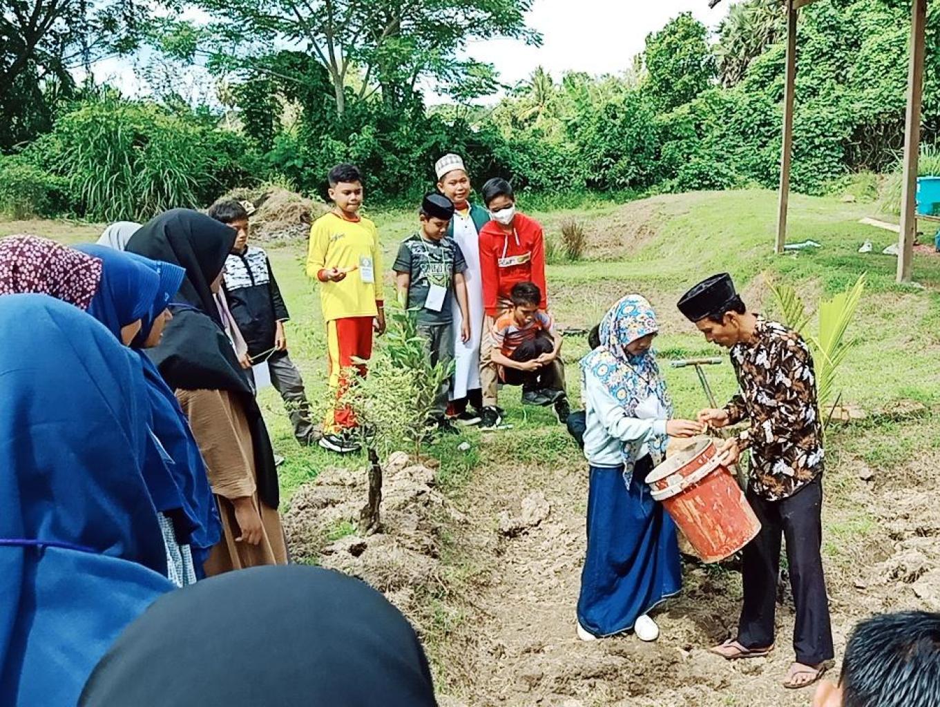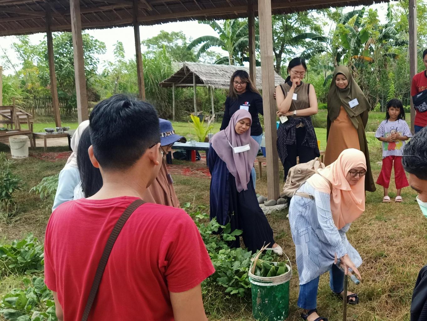 Agar pengunjung yang belajar ke Kebun Denassa terdorong memanfaatkan limbah domestik dan daun menjadi pupuk kami ajak langsung praktik membuat biopori.