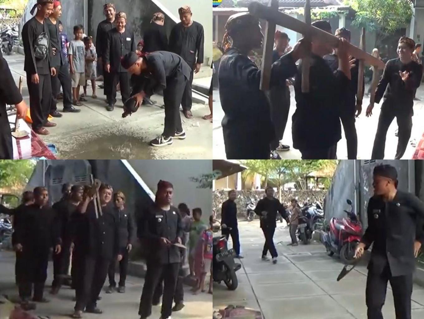 Dengan diringi gamelan, pelaksanaan memutari kediaman kepala desa dilaksanakan dengan hidmat. Kehidmatan tradisi ditandai dengan tidak diperbolehkanya kepala desa dan perangkat desa berbicara satu sama lain pada saat melaksanakan prosesi. Beberapa peralatan yang dibawa juga harus diperagakan sebagimana fungsinya seperti pecut yang harus dimainkan dan dawet yang harus di sebar-sebarkan (disawurke) pada saat prosesi berlangsung.