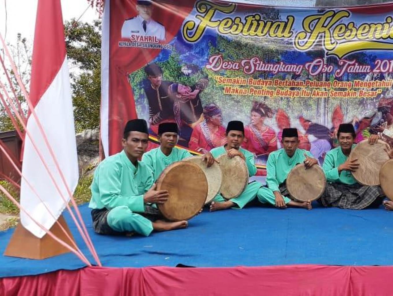 Alat Musik Ini berukuran diameter 30 - 60 cm, terbuat dari kayu dan kulit kambing