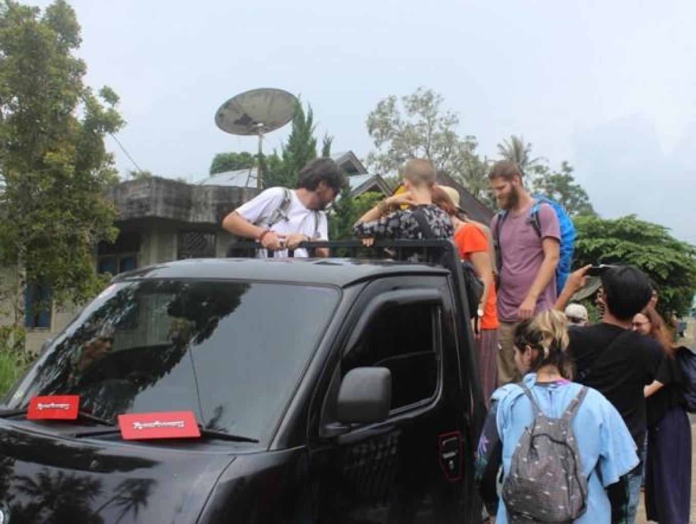 Village Tour di Kampung Budaya Jawi-Jawi mengunakan kendaraan Pick Up Roda 4 (empat), yang mana orang setempat menyebutnya OTO CIGAK BARUAK,