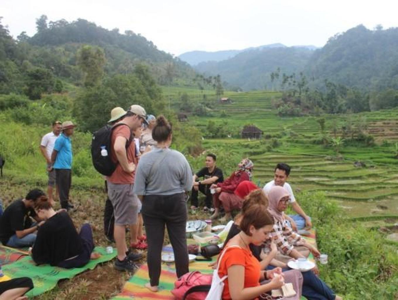 Dengan Pick Up tersebut tamu atau pengunjung dibawa berkeliling kampung, berkililing kampung mengunakan Pick Up memakan waktu lebih kurang 2 jam itupun sudah termasuk makan Snack di tengah sawah dengan tempat yang telah disediakan.