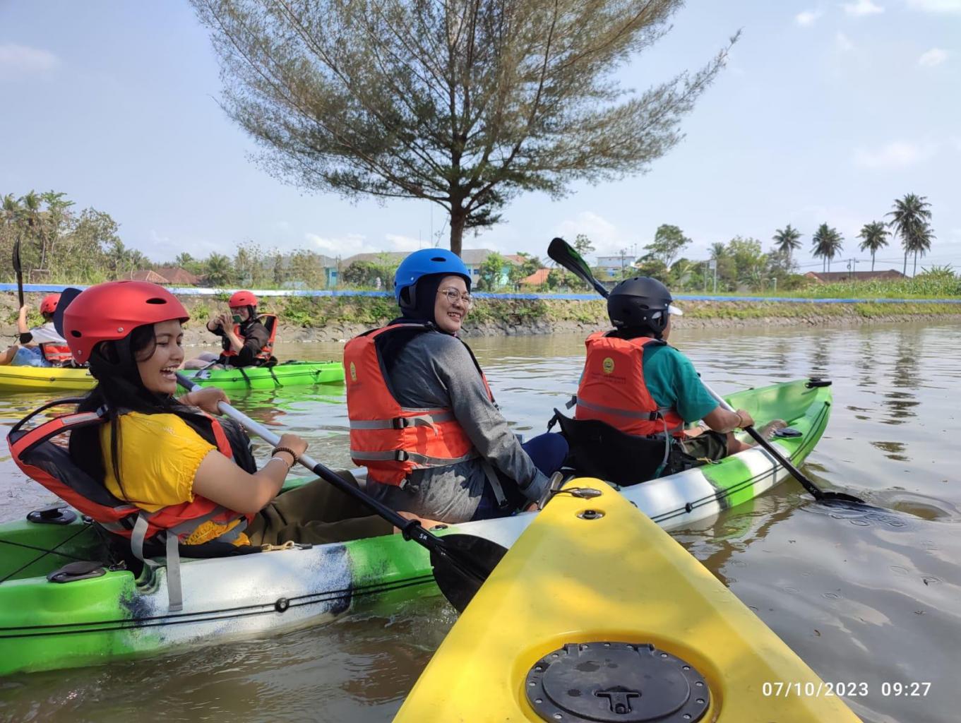 Menaiki kano menyusuri sungai wnongo kecil, dari pintu air samas sampai dengan jembatan kreteg abang