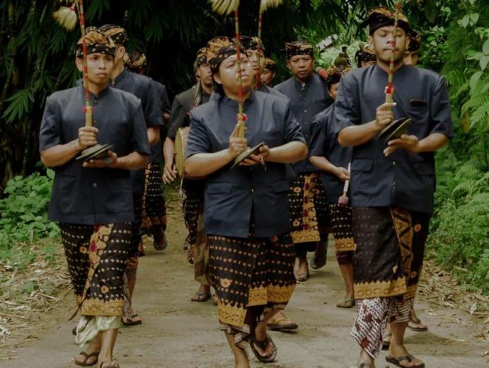 Wisatawan dapat melihat pertunjukan musik tradisonal gamelan tawak-tawak khas desa Batu Kumbung