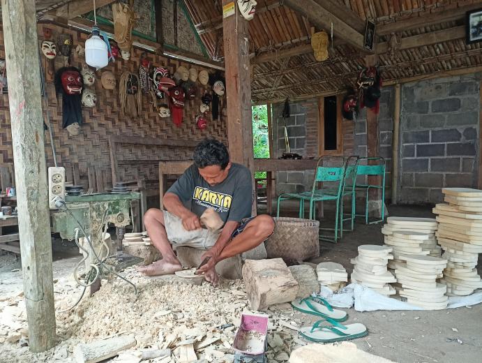 Wisatawan dapat mengikuti aktivitas kegiatan ini dengan datang langsung ke galeri perajin yang ada, ataupun melalui pengelola desa wisata. Biaya yang dibutuhkan untuk kegiatan ini sebesar Rp 30.000 hingga Rp 85.000, menyesuaikan ukuran kayu ukir yang dibatik. Fasilitas yang didapatkan oleh pengunjung yaitu, media batik seperti topeng atau wayang, canting, kompor beserta lilin, celemek pelindung, pensil untuk menggambar, penghapus, rautan, obat-obatan keselamatan, snack, minuman legen dan pendamping. Minuman legen merupakan cairan dari getah bunga kelapa yang akan digunakan sebagai bahan dasar pembuatan gula Jawa