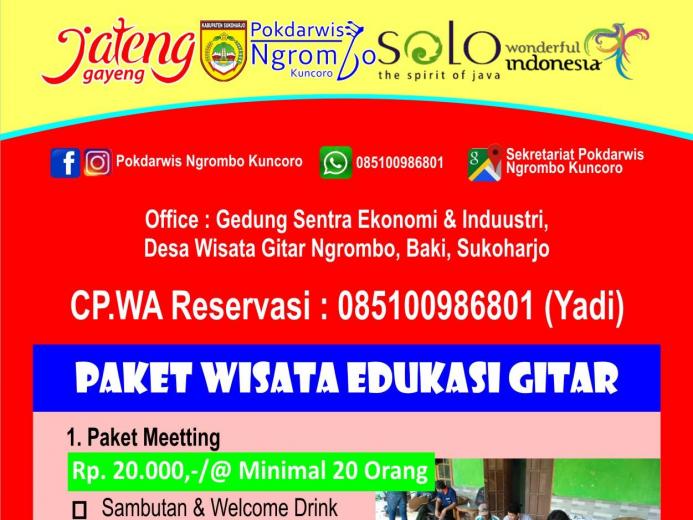 Desa Wisata Ngrombo adalah desa wisata kreatif Gitar dimana pengunjung akan diajak mengenal proses produksi gitar, menikmati keindahan alam pedesaan, budaya & kuliner yang terangkum dalam Jelajah Kampung Gitar.