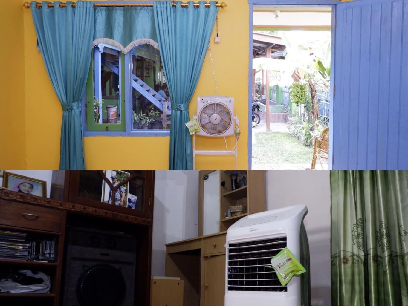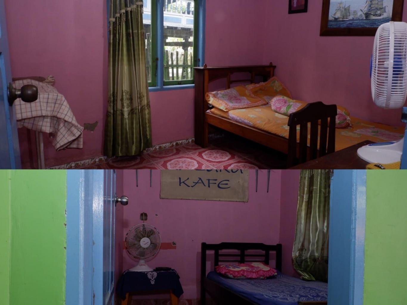 Di home stay ini terdapat 3 kamar. 2 kamar ukuran 3x3 dengan fasilitas kasur dan kipas angin. Satu lagi kamar ukuran luas 4x5 fasilitas kasur dan kipas angir