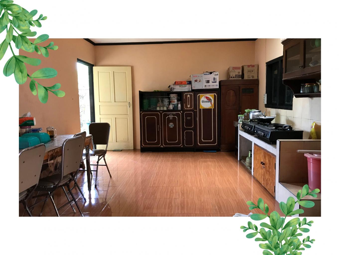 Kamar tidur 3 Kamar mandi 1, water heater Ruang tamu Ruang serbaguna/ruang keluarga Taman Parkiran Dapur perabot lengkap Ruang makan TV Kulkas Speaker