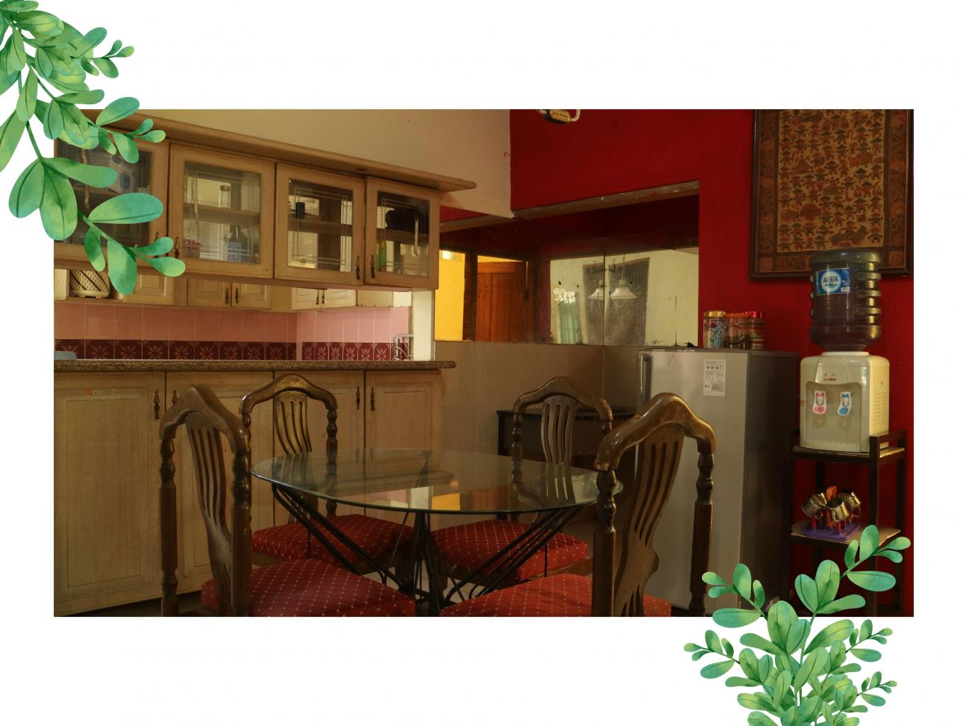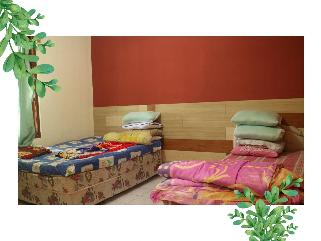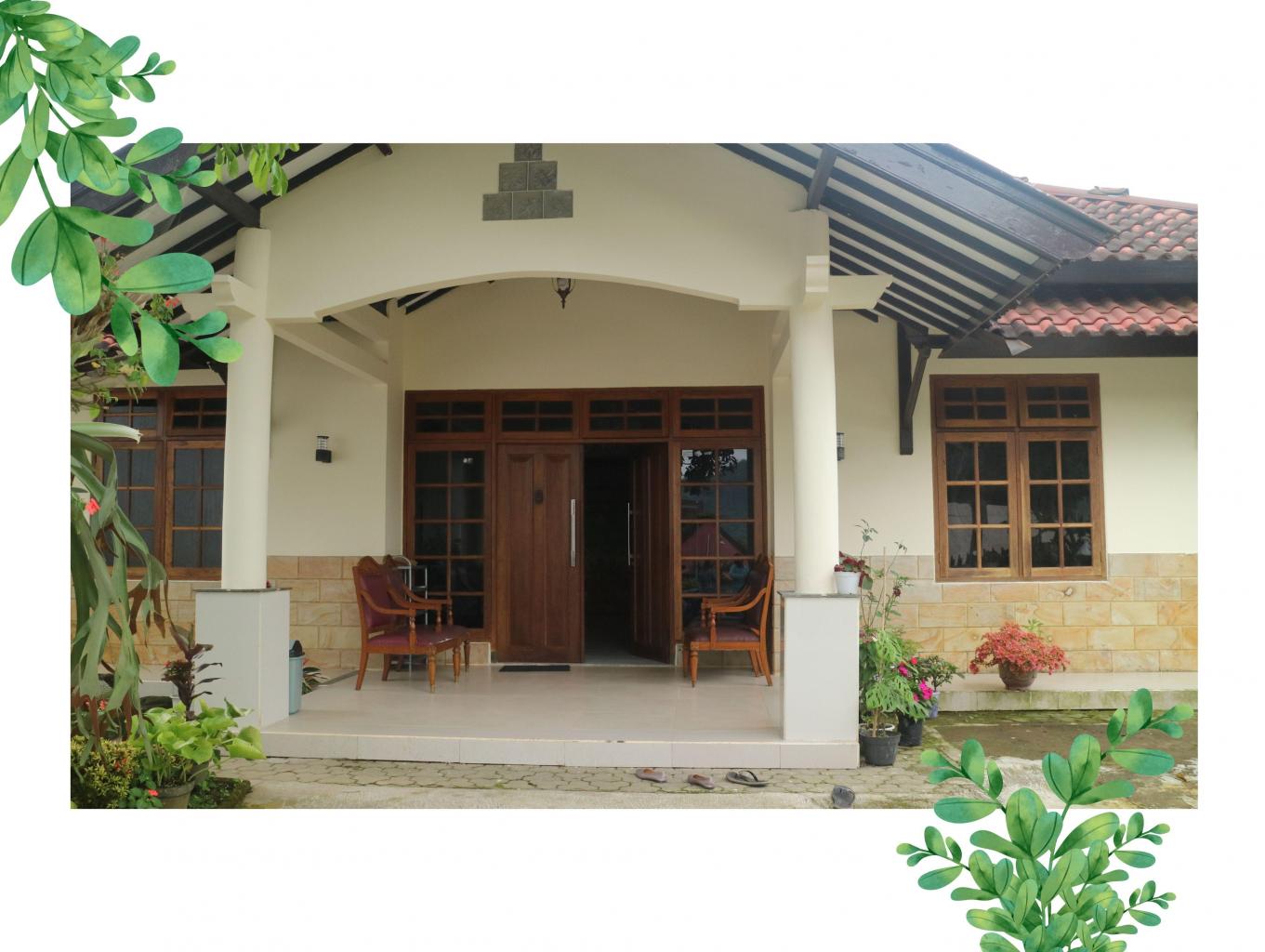 "Kamar 4 (spring bed, extra bed 1 bisa nambah) Kamar mandi 3 (water heater, kamar mandi dalam 1) Dapur (perabot lengkap) Kulkas Dispenser TV Wifi Ruang tamu Ruang makan Bbq area Parkiran Taman"