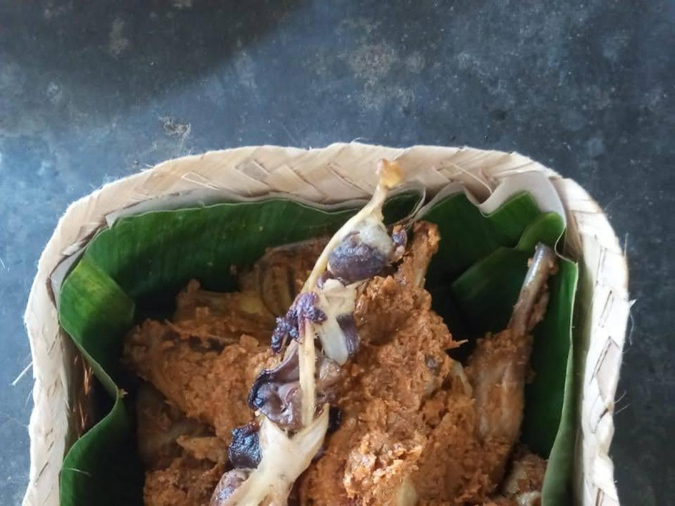 Wisata Hijau Bilebante. Bentuknyaa adalah ayam kampung bakar yang disuir-suir, dan dibumbui dengan bumbu yang sederhana yang dipadukan dengan bumbu rahasia Desa Bilebante