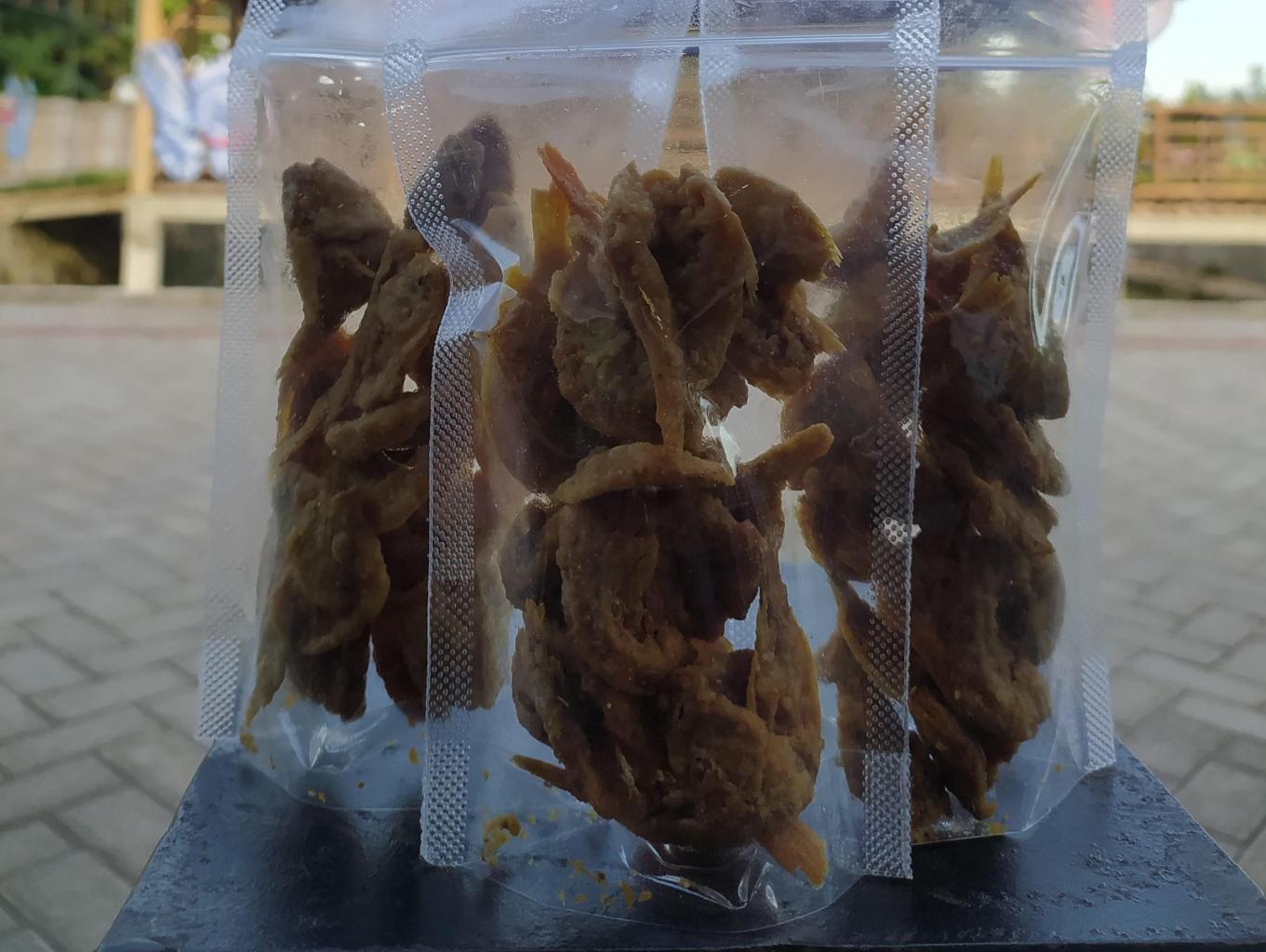 Camilan lain yang patut dicoba adalah baby nila crispy. Camilan ini bisa langsung dimakan ataupun dijadikan lauk makan, terlebih sangat cocok dipadukan dengan nasi hangat. Rasa kriuknya nagih, loh. Harga mulai dari Rp6.000,00 saja per standing pouch 50 gram.