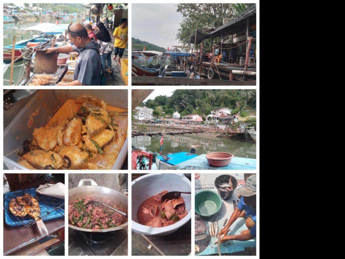 Makan di atas kapal dengan menu berbagai makan laut