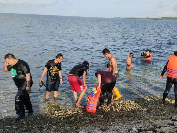 Diving di area karang putih melihat keindahan terumbu karang dan biota laut lainnya bisa dijadikan bahan kajian dan penelitian.