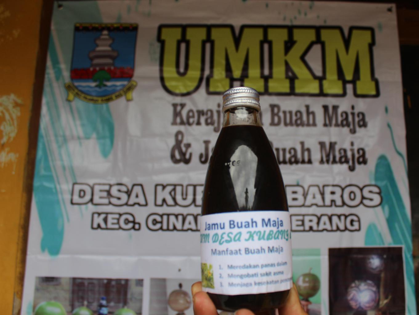 Jamu Buah Maja ini dibuat dari Buah Maja Pilihan yang berasal dari Desa Kubang Baros. Buah Maja di olah dan di kemas dengan cara tradisional. Jamu Buah Maja menjadi Produk Lokal Unggulan di Desa Kubang Baros karena memiliki beragam manfaat diantaranya :