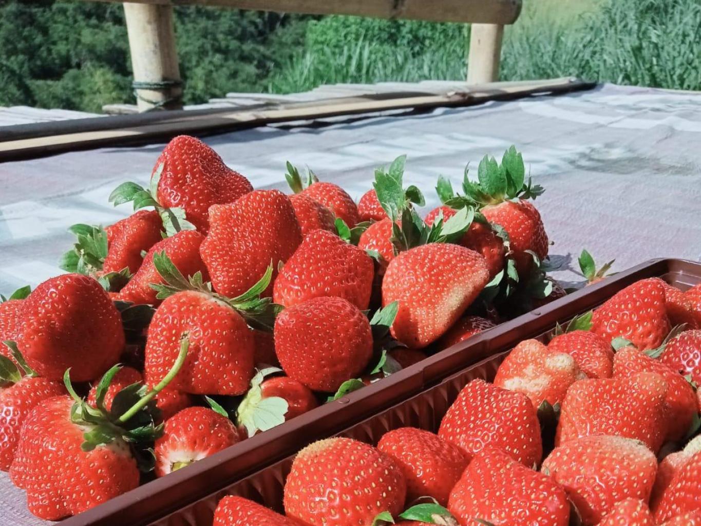 sitem tumapng sari di gunakan di kebun strowbery punya masa panen nya sedangkan para petani harus tetap mempunyai penghasilan menghidupi keluarga nya , antara lain daun bawang di pilih sebagai tanaman untuk tumpang sari dengan sistem di tanam menggunakan karung sebagai wadah untuk menanam nya dan kwalitas strowbery dikebun petani dengang harga 80 ribu per kilo nya, pengunjung bisa memilih dan memetik sendiri strowbery yang di inginkan.menjadi pengalaman yang mengesankan apalagi untuk keluarga yang membawa anak kesan memetik strowbery sendiri akan menjadi cerita menyenangkan untuk anak anak.
