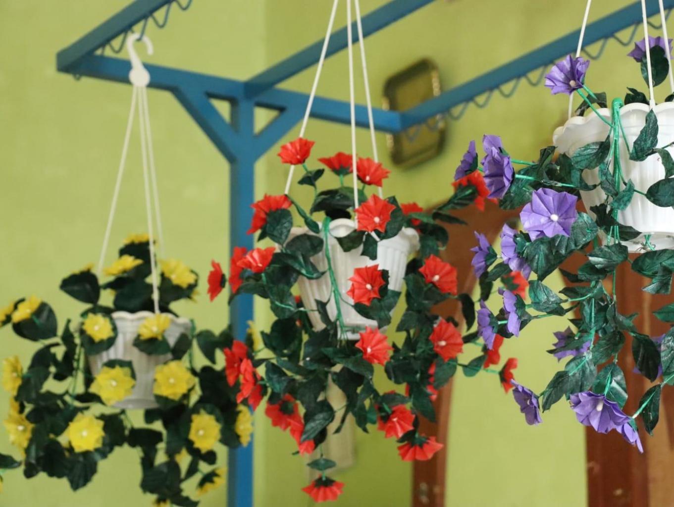 Kerajinan yang terbuat dari limbah plastik ini di buat oleh ibu ibu dusun Sangeng. Muncul nya inovasi kerajinan plastik ini di dasari oleh kasus banyak nya sampah plastik di lingkungan Pacalan mendorong masyarakat untuk memanfaatkan limbah tersebut. Dengan sentuan tangan ibu ibu yang penuh inovasi, membuat kerajinan bunga ini memiliki nilai seni tinggi yang bisa digunakan hiasan meja atau dinding yang mampu memperindahkan ruangan.