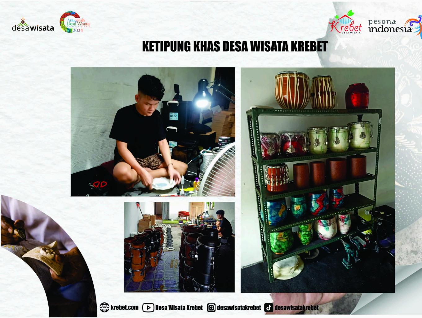 Ketipung dibuat menggunakan beberapa jenis kayu, seperti kayu nangka, mahoni, mangga dan munggur. Proses pembuatan dari awal dilakukan oleh tenaga ahli di Desa Wisata Krebet, jadi produk ini memang asli dihasilkan oleh pengrajin di Krebet.