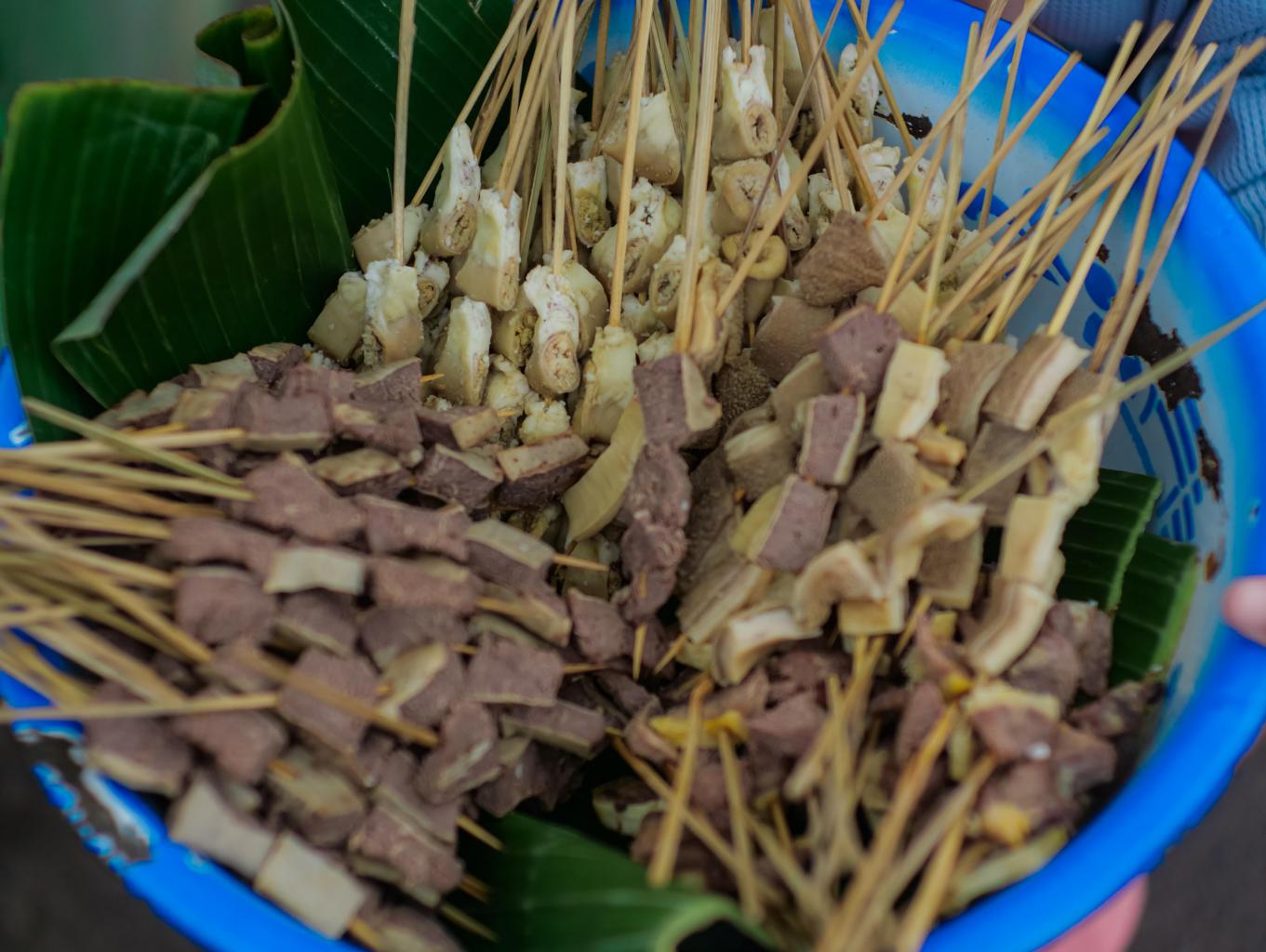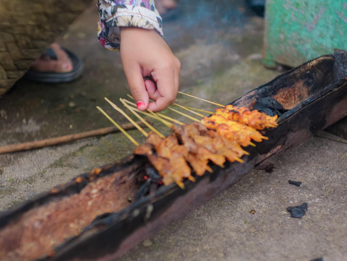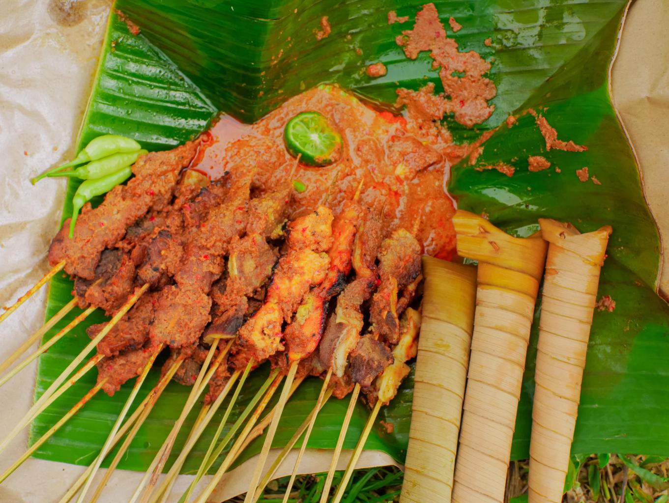 Sate ini dibuat di dusun karang mas, yang bahan dasarnya dari daging sapi dan ayam
