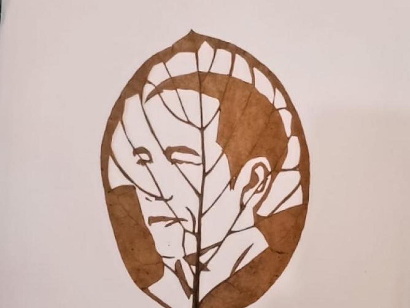 Lukisan wajah menggunakan media daun kering, dan juga ampas kopi