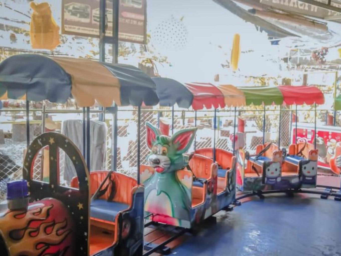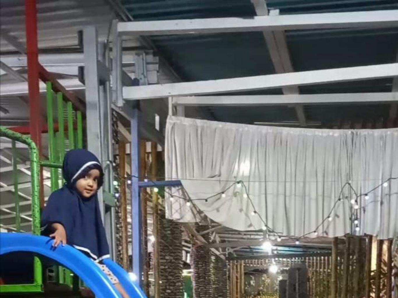 permainan anak sepuasnya 20.000/setengah jam Ada mandi bola, Kereta api, Memancing ikan, Komedi putar, Permainan Susun Lego, Ayunan anak-anak dll.