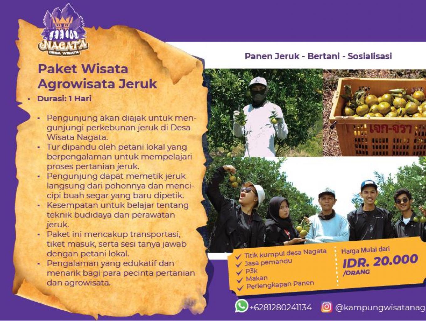 Memiliki pengalaman memanen jeruk dan bertani jeruk di Desa Wisata Nagata adalah sebuah perjalanan yang memikat dan memperkaya, menghadirkan kesempatan bagi para pengunjung untuk merasakan kehidupan pedesaan yang autentik dan menikmati keindahan alam serta kekayaan pertanian lokal.
