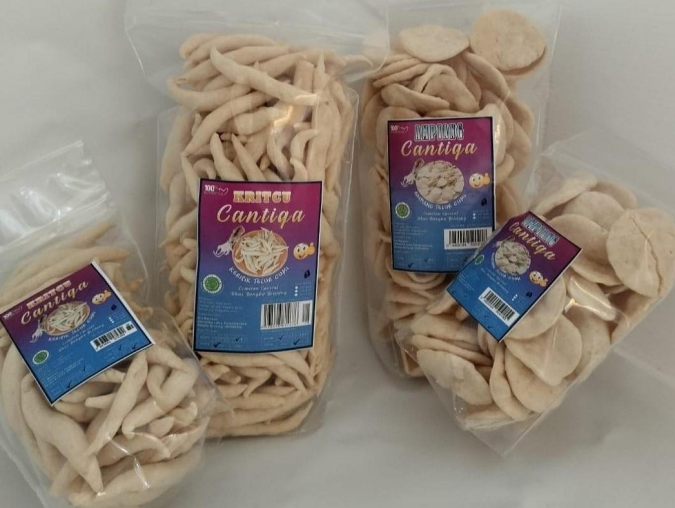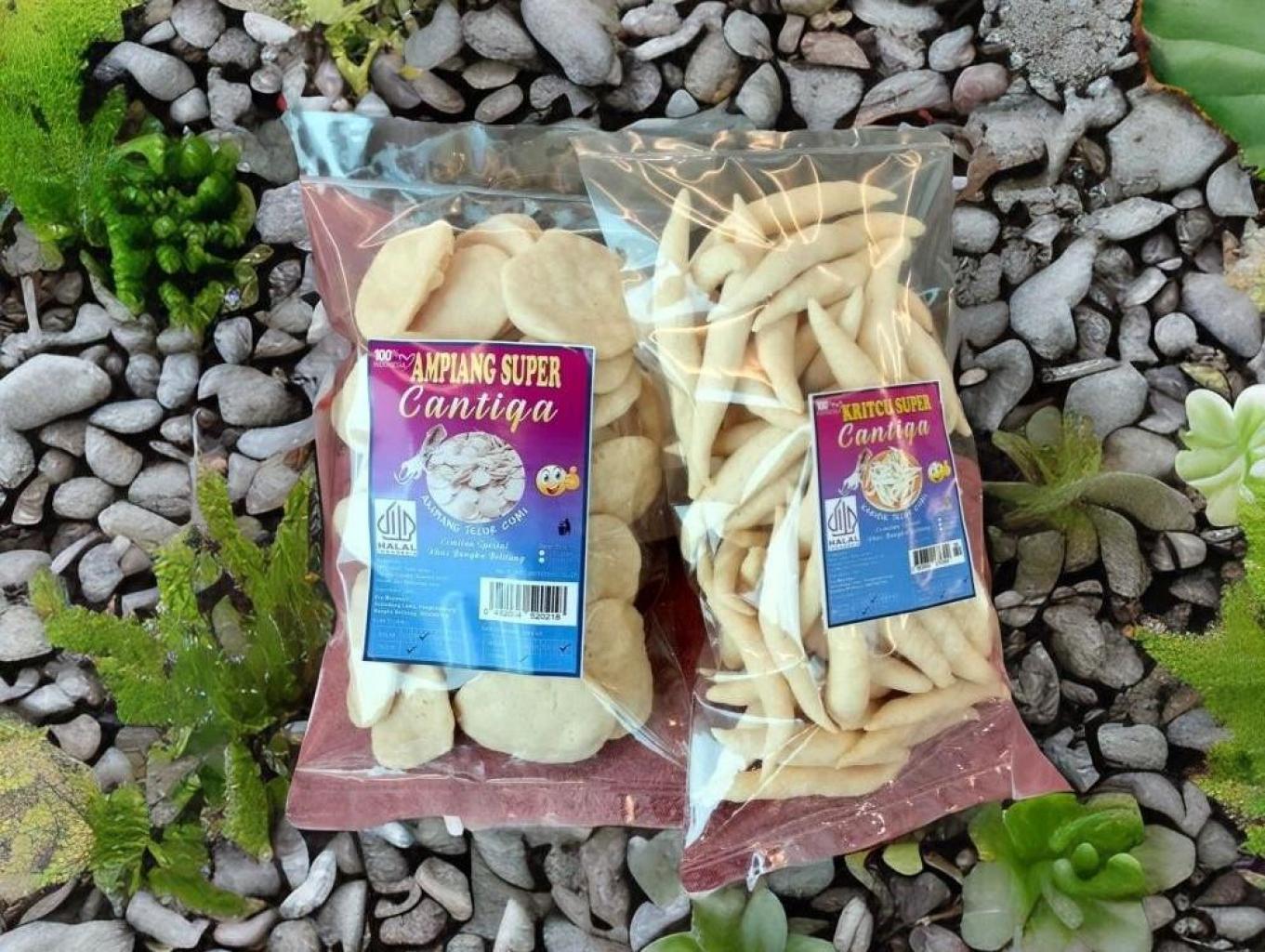 Snack Cantiqa menyediakan beragam camilan olahan produksi laut khas Pulau Bangka seperti ampiang dan kritcu.