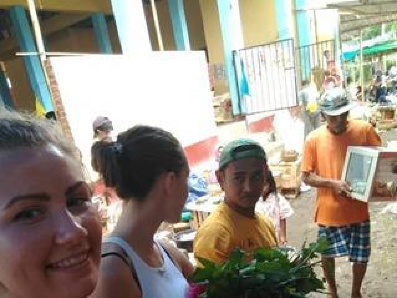 Istirahat sejenak sambil di ajarkan cara membuat topi dari daun kelapa seperti layaknya aktifitas orang local aik berik